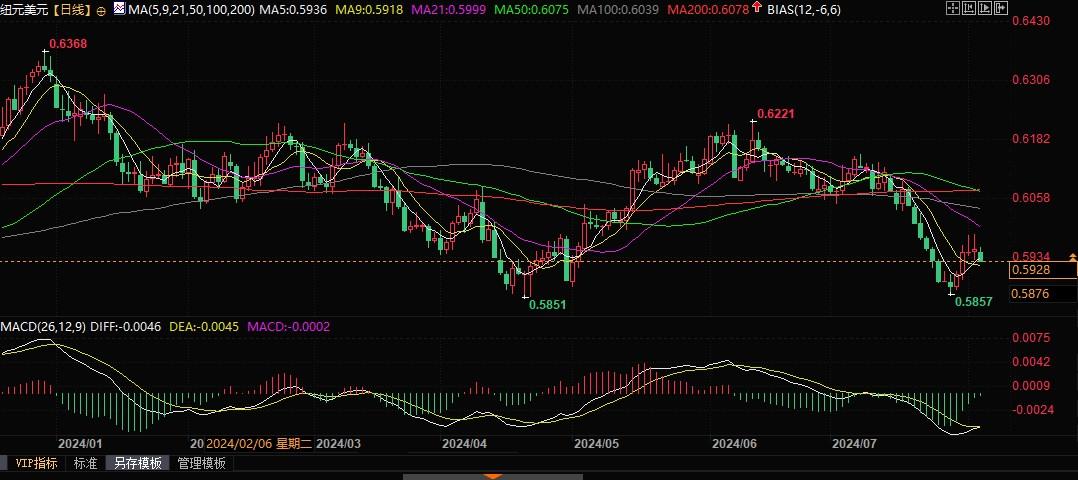 北京时间8月5日13:38,纽元兑美元报0.5926/27