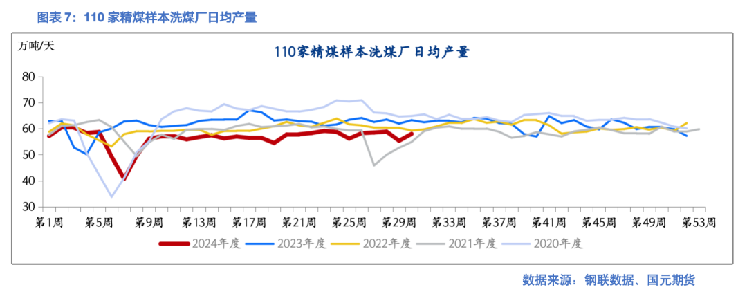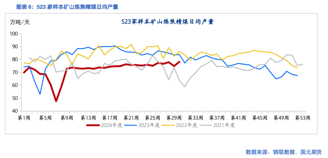 重大会议结束,矿山生产快速回升。上周523家炼焦煤矿山样本核定产能利用率为90.87%,环比增2.82个百分点;原煤日均产量204.77万吨,环比增6.35万吨;精煤日均产量78.18万吨,环比增3.3万吨。