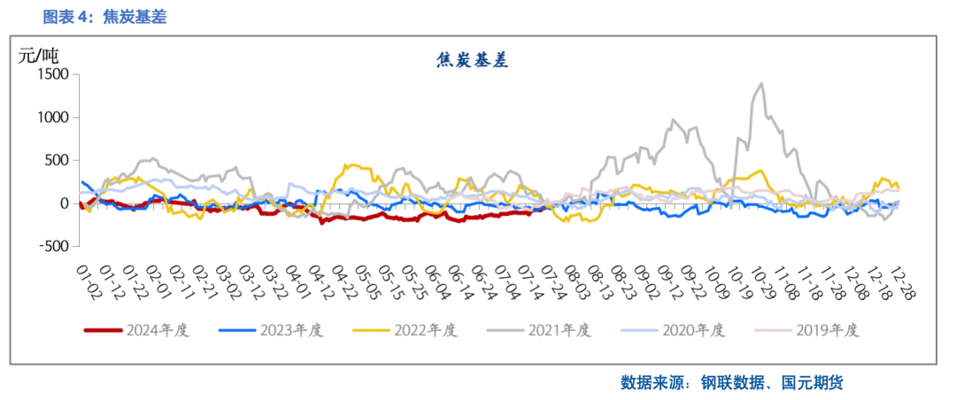 双焦受黑色系带动,大幅下跌。铁水产量维持高位,但是双焦及铁矿供偏宽松,成本支撑下滑。成材销售淡季,新旧标准切换,部分市场低价抛售。期货跌幅大于现货,双焦基差明显走高。