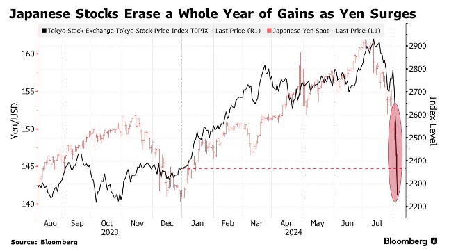 自日本央行7月31日提高利率以来,日元大幅升值,这也震动了全球市场,颠覆了无数建立在日元廉价借贷基础上的投资策略。