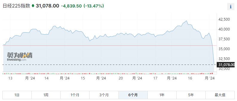 日元升值加剧日本股市下跌!日经指数单日暴跌13%进入技术性熊市