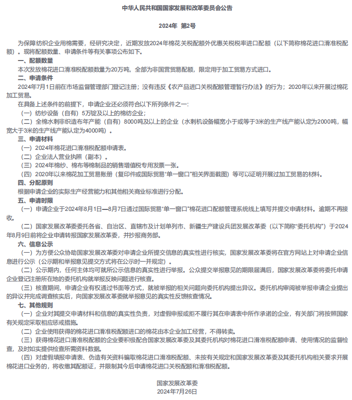 配额落地:仅20万吨加工贸易。不及此前预期40万吨。
