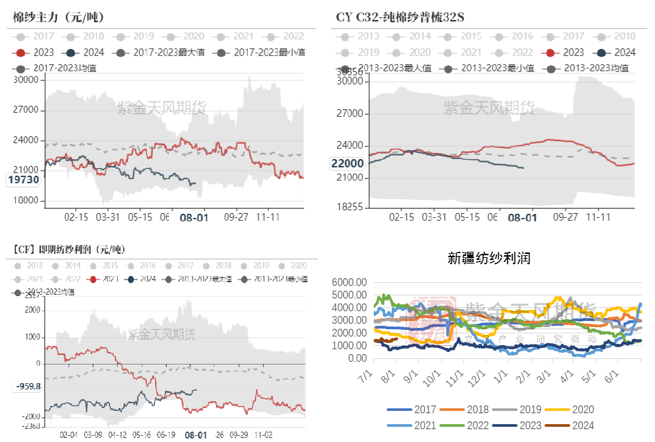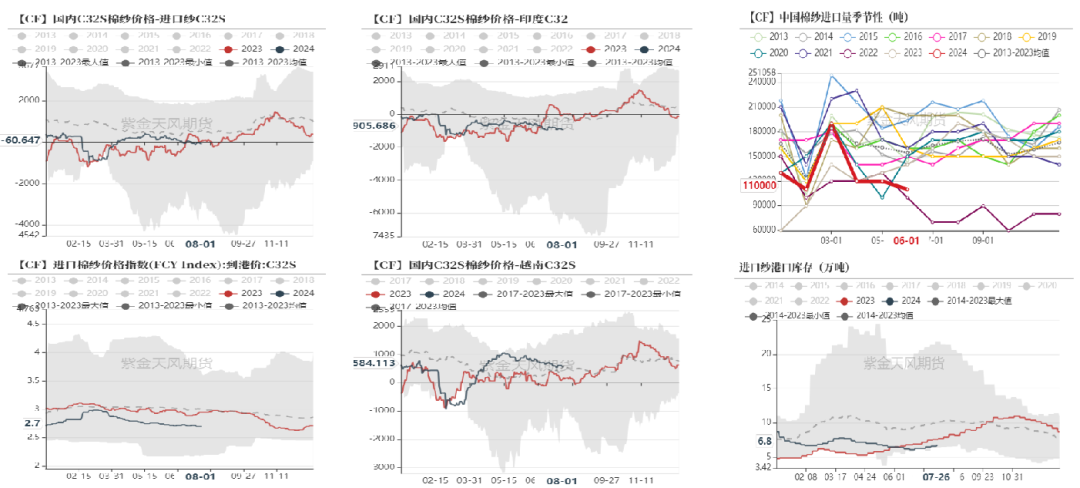 贸易环节目前棉纱库存整体不高,但考虑到八月通常为行情由弱转旺的月份,贸易商近期备货需求随之回暖。