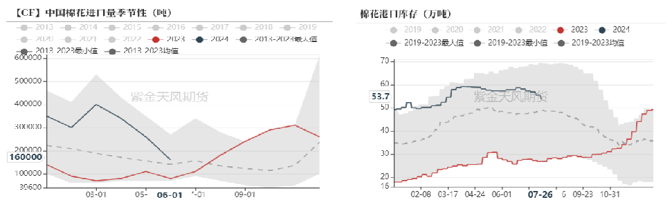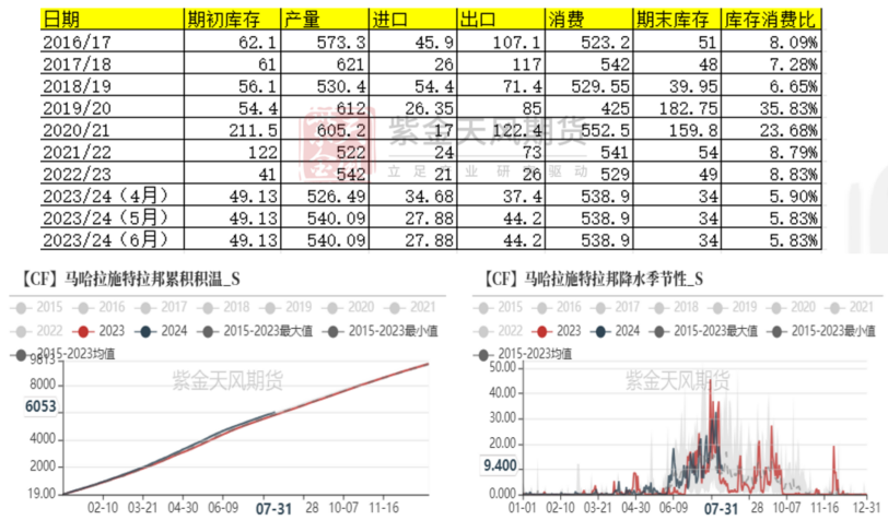 新年度种植预期:中性USDA7月报告,全球方面,2024/25年度产量调增,但是利空被期初库存调减抵消,贸易量调减,消费小幅调增,整体影响中性;美棉产量调增,影响偏空。