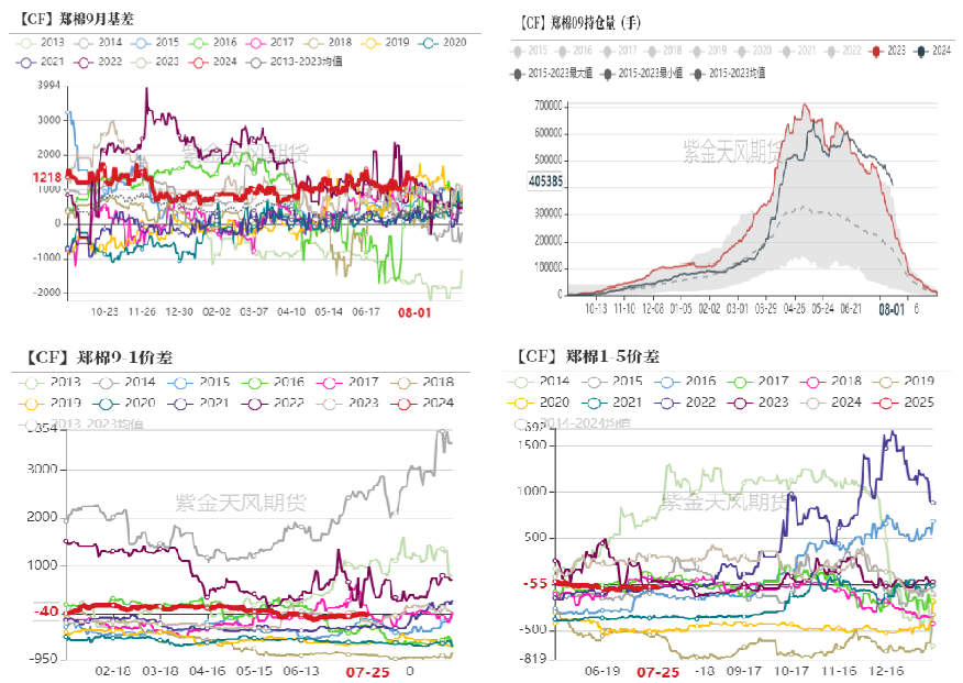 核心观点:中性偏空美国天气利好产量,棉价估值中性波动。国内配额发放数量不及预期,盘面短期小幅走强,但是不改中期偏弱趋势。下游边际再次转淡,09合约持仓矛盾凸出,集中移仓导致价差偏离,预计移仓稳定后回归。