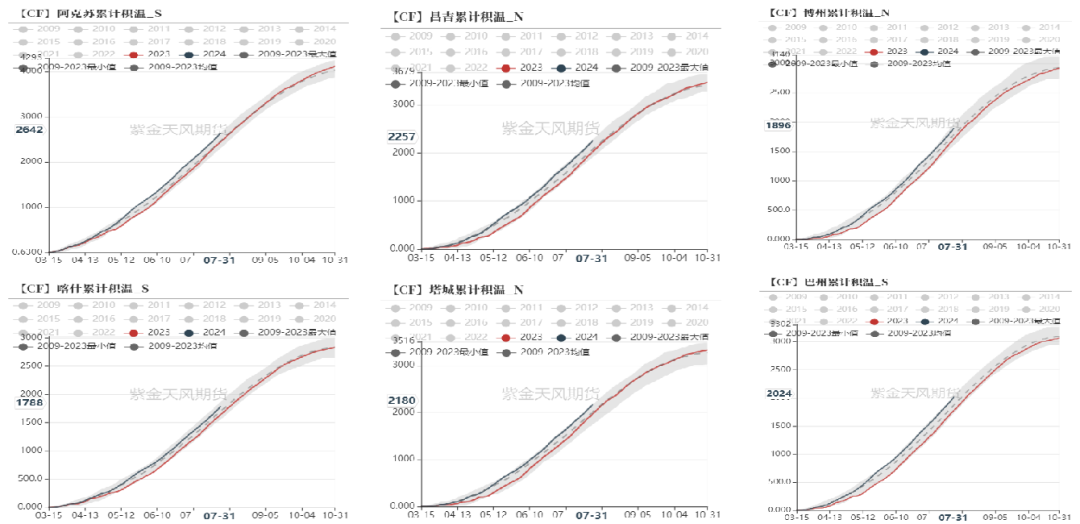 2024/25年度种植季,积温继续维持超过过去五年均值水平,高温环境下,满足滴灌用水可以缓解高温带来的影响。