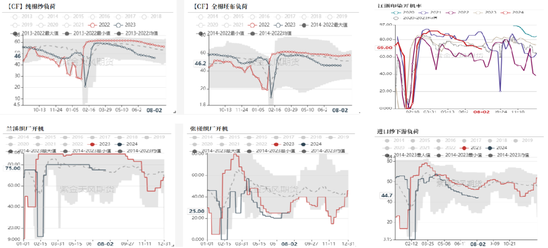 截至8月2日,棉纱厂开机负荷为46%,继续下滑。