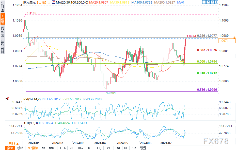 美元受到一系列疲弱经济数据的影响。7月份美国供应管理学会制造业采购经理人指数(PMI)数据显示,制造业活动收缩幅度大于预期,从预期的48.8和6月份的48.5降至46.8。这一出人意料的收缩突显出制造业面临的持续挑战,进一步令美国经济前景黯淡。这些指标描绘了一幅苦苦挣扎的美国经济图景,从而削弱了美元,推动欧元/美元走高。