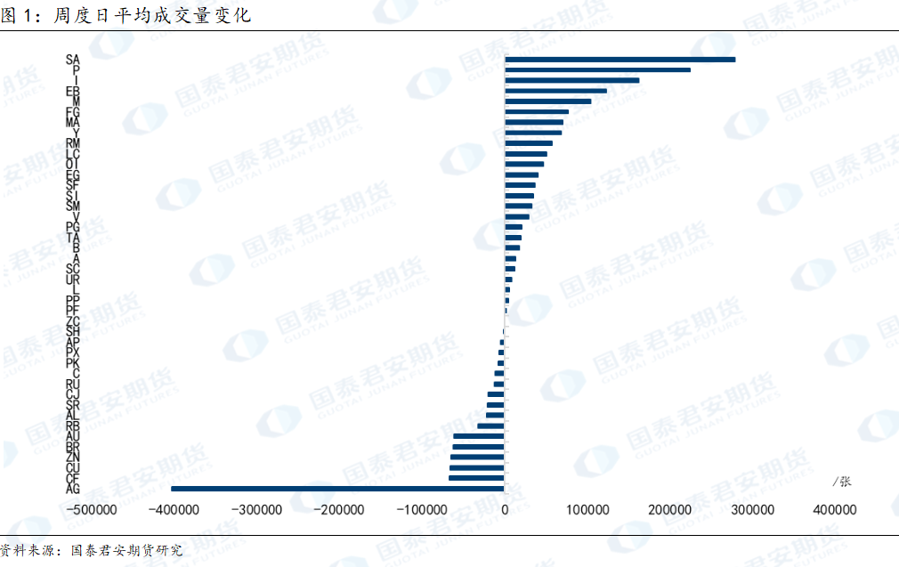 从波动率来看,以原油和玻璃纯碱为代表的能化板块升波,贵金属和有色板块也整体呈现升波,农产品板块中豆菜粕以及棕榈油和玉米这些交易量占比大的期权品种带动整个板块升波,黑色板块中交易量大的铁矿螺纹降波。