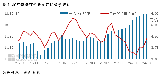 【导语】7月份蛋价创年内新高,蛋鸡养殖盈利颇丰,养殖单位淘鸡意向偏低,加之新开产蛋鸡数量增加,在产蛋鸡存栏量增势相对明显。8月份新开产蛋鸡数量仍然偏多,但淘汰鸡出栏量或有明显增加,产蛋鸡存栏量增势放缓,但立秋后产蛋率、蛋重或有所恢复,鸡蛋供应仍然充足。