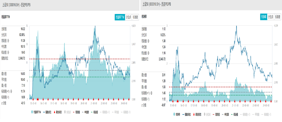 上证50PE十年以来分位点52%,PB分位点10%,处于历史中低位。