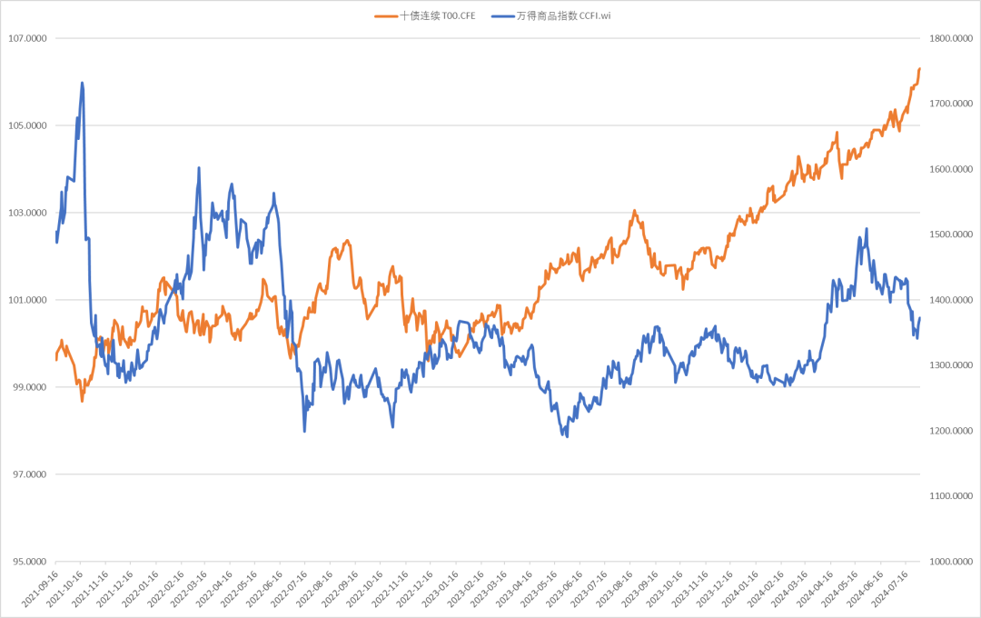上周十年期国债期货价格继续上涨,商品指数下跌,沪深300指数弱势震荡。