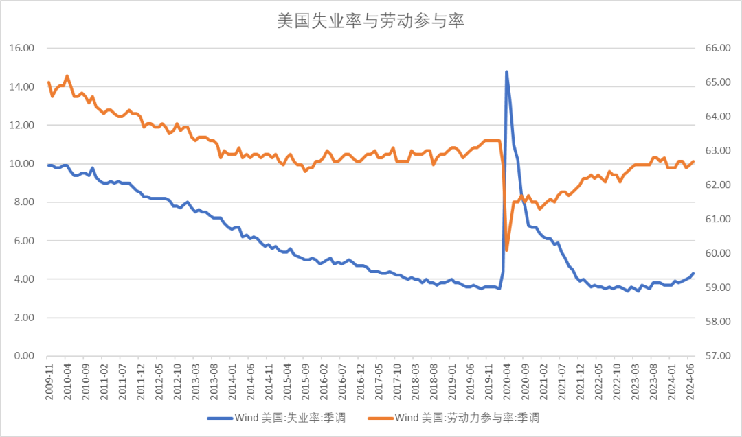 美国7月就业数据低于预期,失业率上升到4.3%,新增非农就业114万,劳动参与率稳定,职位空缺数持续下降。美国疲弱的就业数据引发了市场对美国衰退的担心,9月份降息的概率很高。