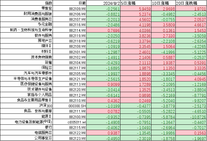 上周行业表现上零售、耐用消费品、券商、医药等领涨,公用事业、电信、银行等红利板块垫底。市场风格偏向积极。
