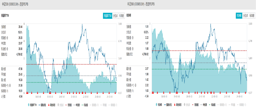 中证500PE注册制改革以来PE分位点15%,PB分位数0%,处于中低位。