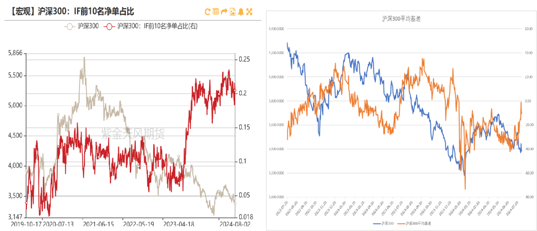 IF前十名会员净空单占比稳定,平均基差回到零值。