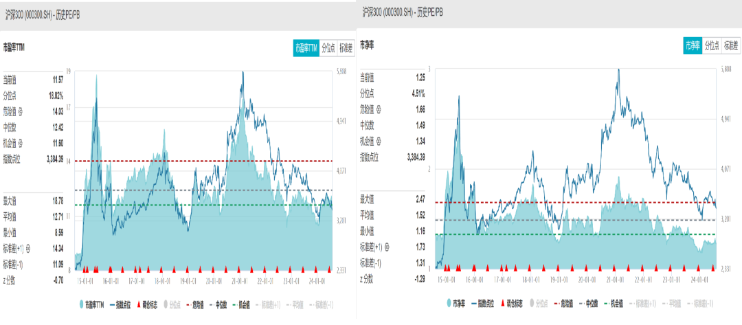 沪深300PE十年分位点18%,PB分位点5%,处于中低位。