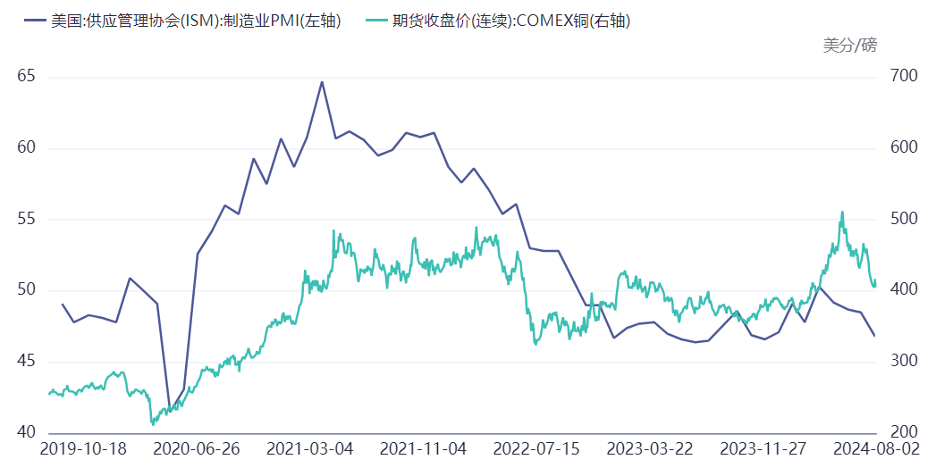 不过,ISM公布的数据显示,美国7月ISM制造业显著不及预期,萎缩幅度创八个月最大,新订单和产出下滑,造成就业人口创下四年来的最大降幅。美国制造业PMI下降激起市场对于美国经济衰退的担忧,给铜等工业金属造成下跌压力。工业金属承压限制金银涨幅。