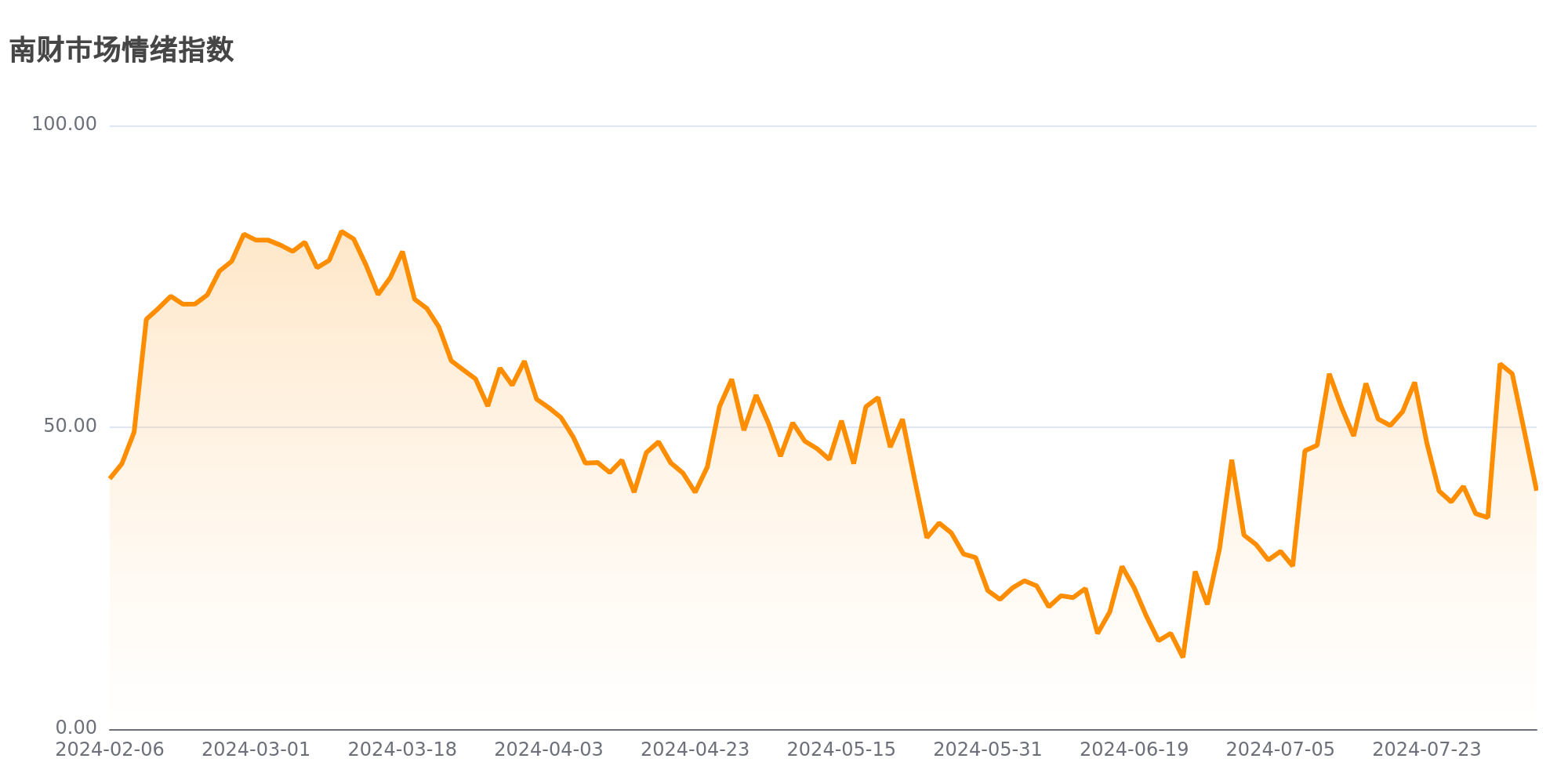 今日南财市场情绪指数为39.5,市场投资热度明显降低