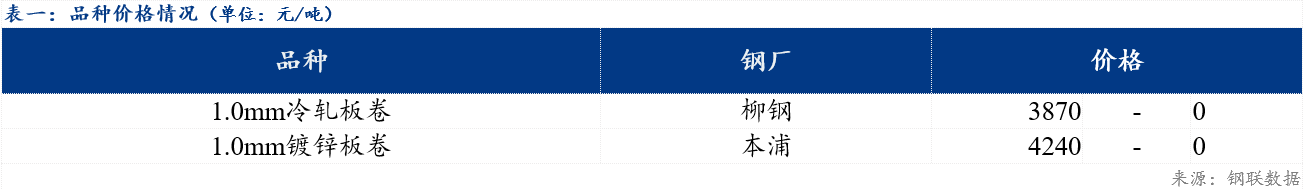 今日市场冷轧板卷主流资源价格3870元/吨,较上一交易日持平;镀锌板卷主流资源价格4240元/吨,较上一交易日持平。