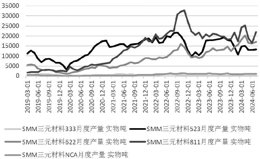相比之下,二季度以来,需求端短期偏弱。7月以后,部分头部三元的排产或有改善,但目前材料端订单仍不是很乐观,大厂以长协客供为主刚性采买,主流电芯厂仍对价格下行区间的原料持观望态度,在去库压力和下游订单一般的情况下需求难有明显起色。数据显示,7月碳酸锂月度需求量64925吨,较上月减少2334吨,环比减少3.48%。7月预期三元排产环比有所改善,中高镍预计增量更大。三元改善主要受挂钩销售订单和库存建立影响,但考虑终端淡季,电池和材料端改善不宜过于乐观。磷酸铁锂企业目前仍以按需生产为主,部分企业备库量已有所增加,7月产量或小幅减少。储能和动力市场预期改善,需求整体稳中有升。