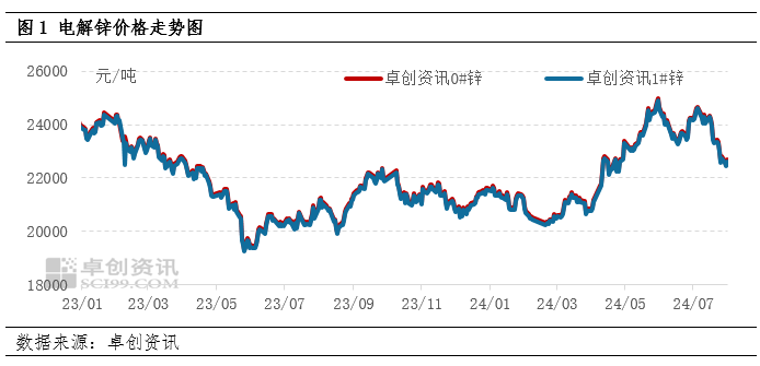 根据卓创资讯监测数据显示,7月卓创资讯现货锌月均价为23745元/吨,环比跌0.30%,同比涨16.02%。月内日均价高点为24670元/吨,低点为22500元/吨,高低价差2170元/吨,振幅9.64%。日价格波动区间在22450-24720元/吨。