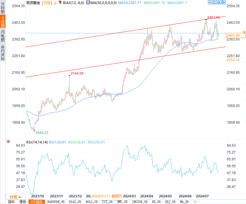 汇通财经APP讯——周三(8月7日)晚间,黄金市场中,多头力量正试图夺回2400美元/盎司这一关键心理关口。市场显示出一定的韧性,在连续四个交易日的下跌之后,金价一度触及2403美元/盎司的高点,但多头力量尚未能够稳固这一水平。这一价格波动的背后,是全球宏观经济状况、货币政策预期、地缘政治事件以及市场供需关系的复杂交织。