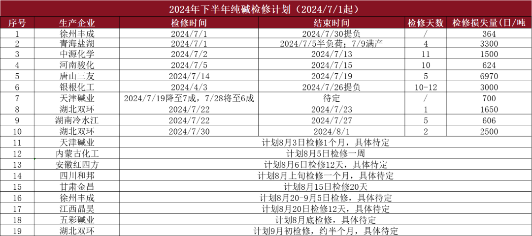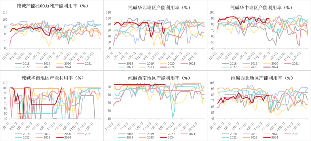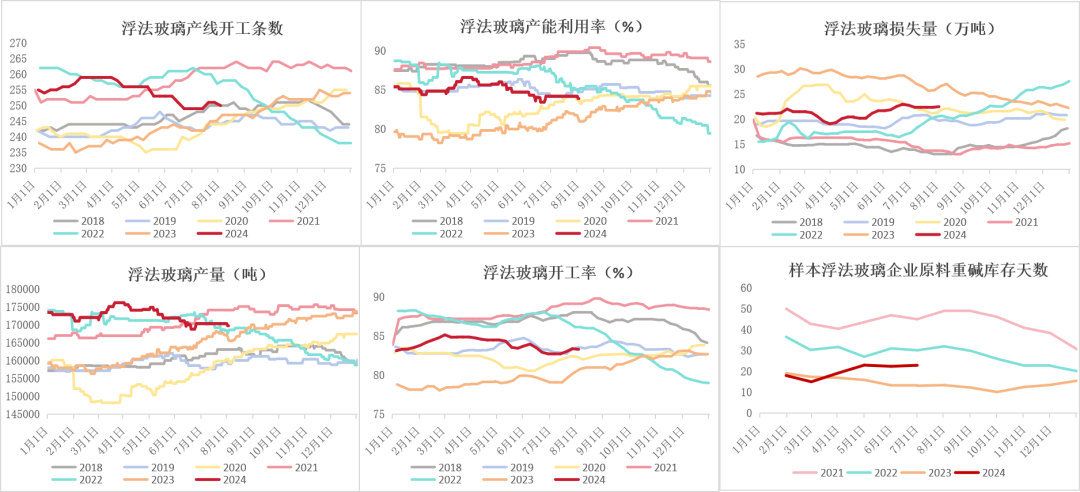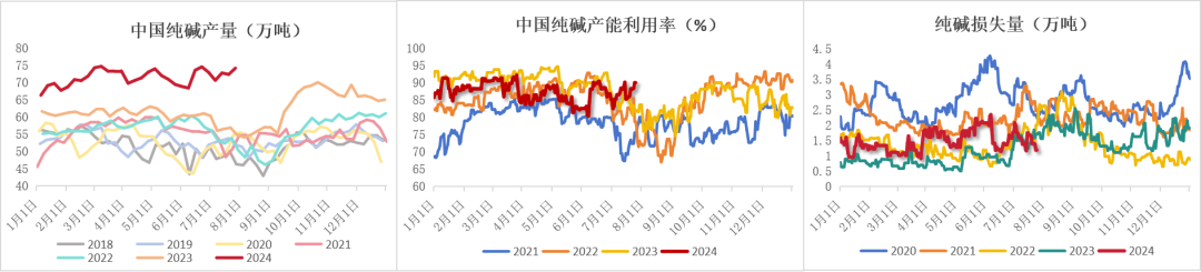 截至2024年8月2日,纯碱开工率、产量环比小幅上升,损失量环比下降。