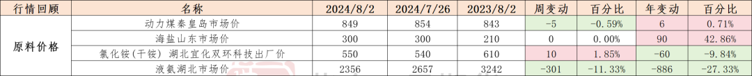 截至2024年8月2日,华东联碱装置联产制纯碱周度毛利为145元/吨,较7月25日230元/吨,周变动-85元/吨(-36.96%);华北氨碱法纯碱周度毛利为187元/吨,较7月25日253元/吨,周变动-66元/吨(-26.09%).