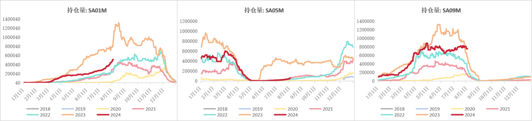 SA05M本周大幅增加,截至2024年8月2日,SA05M持仓量65940手,较7月26日增加29136手,环比增幅79.17%;较去年同期减少282050手,降幅81.05%。