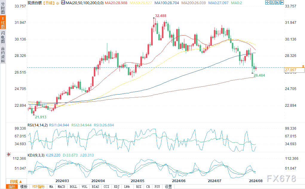 汇通财经APP讯——周三(8月7日)欧盘时段,受避险需求和美联储最早将于9月降息的预期升温推动,银价小幅上涨。不过,涨幅受到美元反弹和美国国债收益率上升的限制。