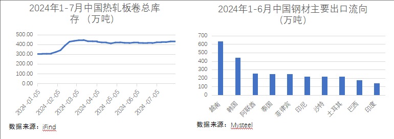 国内来看,目前国内需求走弱,库存量始终处在较高位,因此出口成为热卷的主要消费去向,虽然海外贸易摩擦不断,钢材出口仍然保持较高增速。后续如果越南反倾销落地,将对国内热卷市场产生较大的影响,将增加国内供应端的压力。