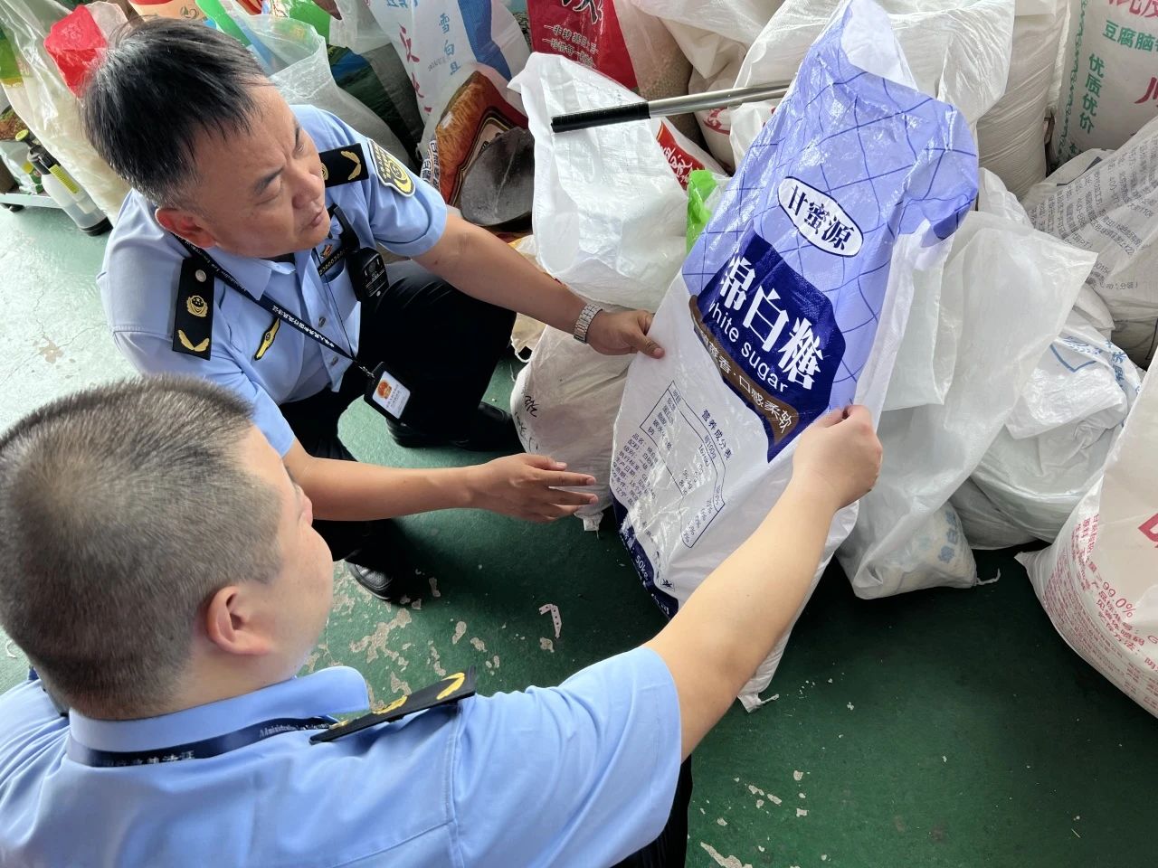 执法人员对相关品牌绵白糖产品的进货及销售情况开展调查取证。资料图片