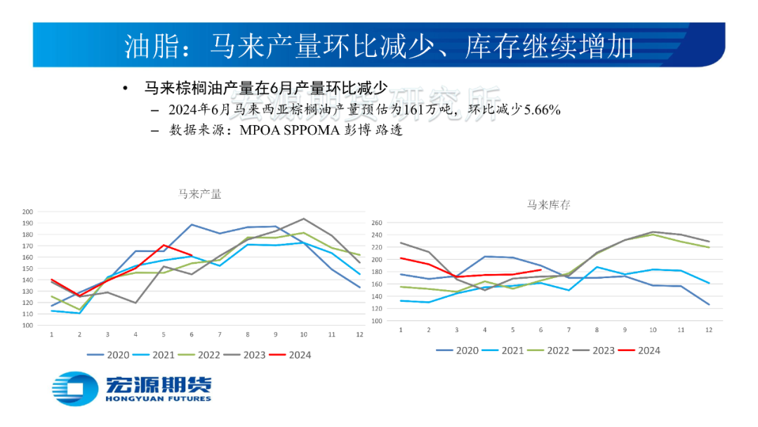 马来西亚棕榈油协会(MPOA)称,2024年7月马来西亚棕榈油产量环比增加11.93%。