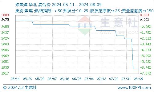 据生意社商品分析系统显示,炼焦煤价格本周弱势下行。8月5日到8月9日,炼焦煤均价为1932元/吨。