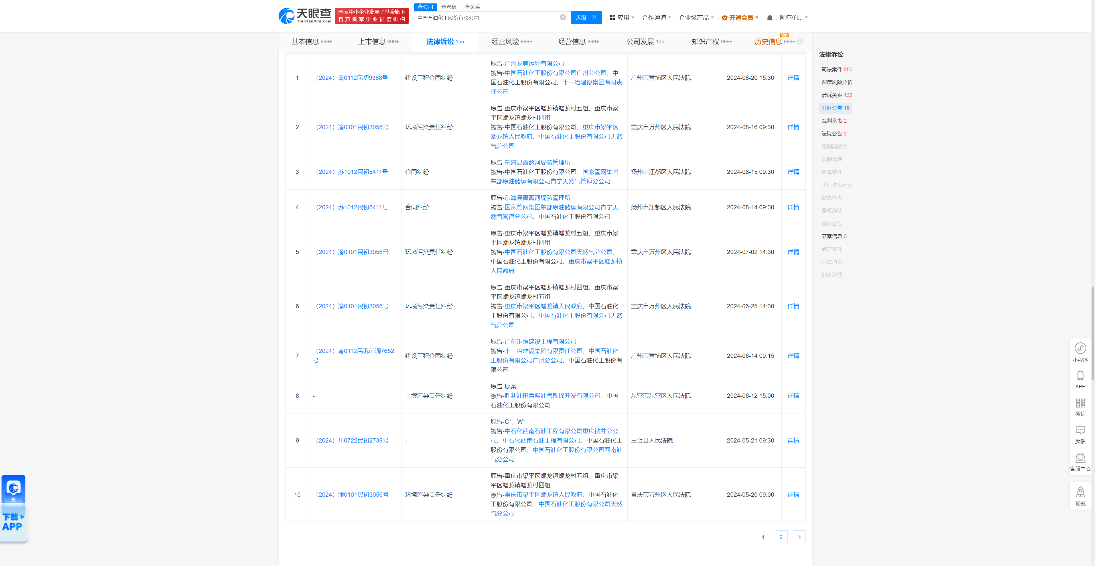 中国石油化工因建设工程合同纠纷被告,今年来案件涉及江苏、重庆等地