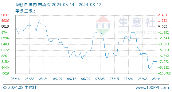 8月12日生意社菜籽油基准价为8161.67元/吨