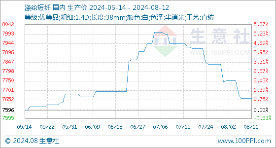 8月12日生意社涤纶短纤基准价为7660.00元/吨