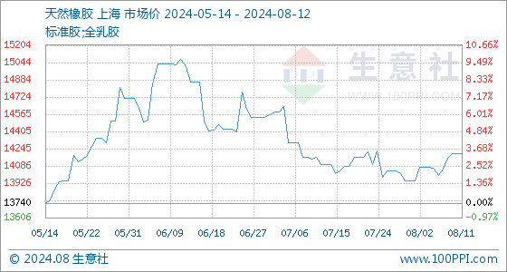 8月12日生意社天然橡胶基准价为14202.00元/吨