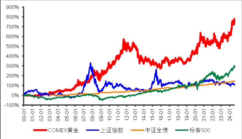 自2000年以来,COMEX黄金涨幅高达725.48%,显著跑赢上证指数(111.61%)、中证全债指数(148.86%)和标普500指数(271.86%)的同期表现。这样的收益能力在资产荒、低利率的环境下,无疑显现出较好的投资吸引力,是值得投资者长期拿的品种之一。