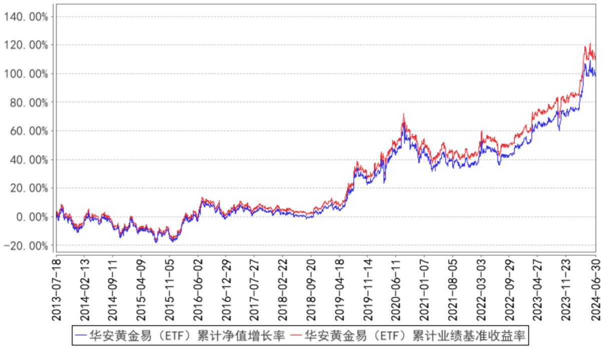 自成立以来,华安黄金ETF实现总回报100.34%,同期业绩比较基准收益率112.15%,为持有人较好把握了黄金的长期行情。(数据来源:基金定期报告,截至2024年6月30日)