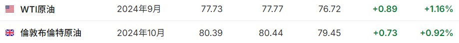 截至发稿,WTI原油期货涨1.16%,报77.73美元/桶。布伦特原油期货涨0.92%,报80.39美元/桶。