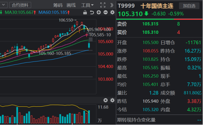 今日,国债期货全线下跌,市场传言江苏省联社通知江苏农商行禁止国债交易,部分券商自营、资管也受到指导。但相关人士表示,没有接到消息与指令。