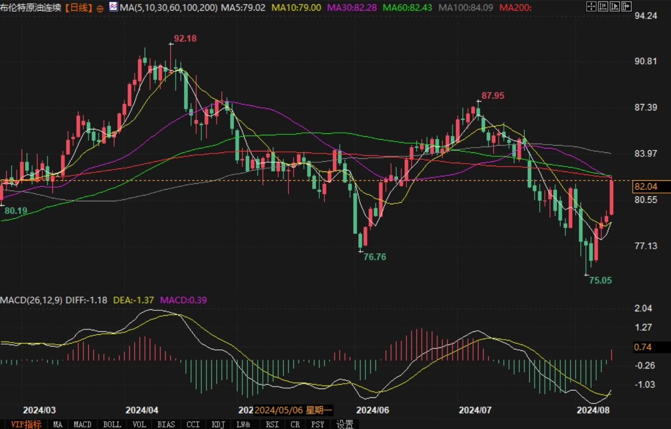 北京时间8月13日7:21,布伦特原油价格报82.04美元/桶