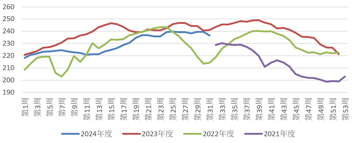 根据钢联数据,本周螺纹钢高炉利润平均亏损-419.49元/吨,前值-351.58元/吨,本周铁水产量236.62万吨,前值239.61万吨,产量减少2.99万吨,环比下降1.25%,铁水产量阶段性见顶。