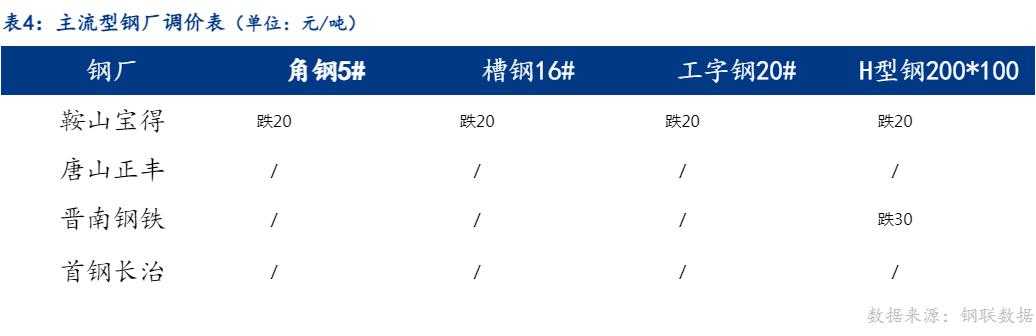 2、成交量为20家型钢厂当日成交,其中包括工字钢6家、角钢7家、槽钢7家。