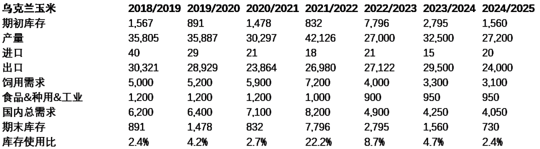 表4.乌克兰玉米平衡表