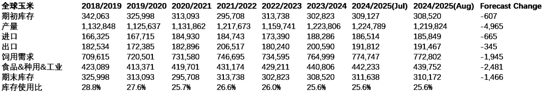 表5.全球玉米平衡表