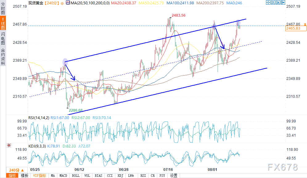 汇通财经APP讯——周二(8月13日)欧盘时段,现货黄金在亚盘冲高至2476.84美元后回落,盘中报2466美元/盎司。