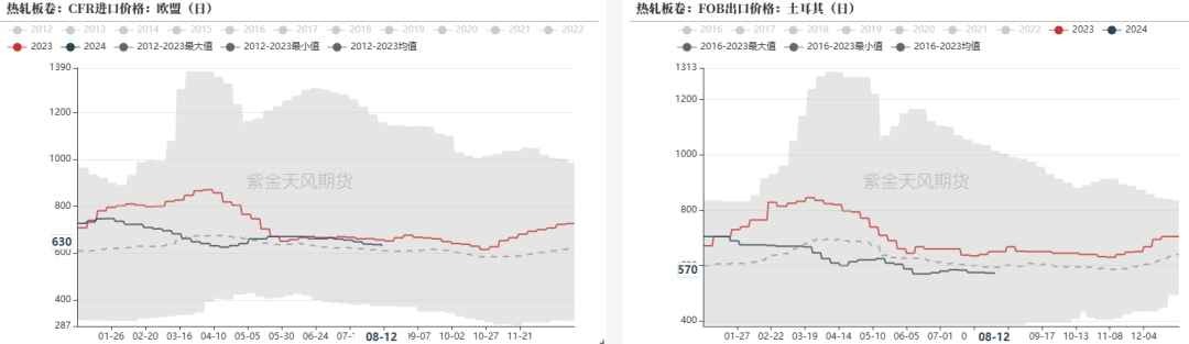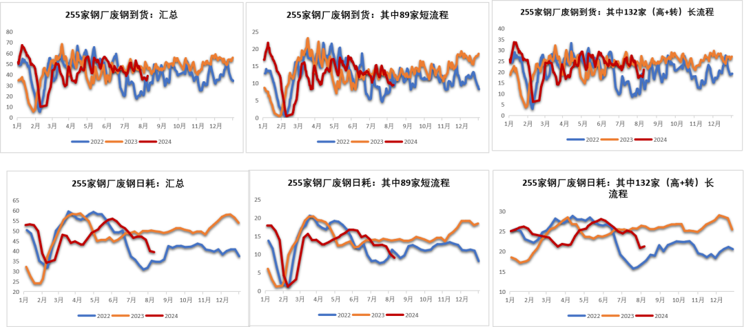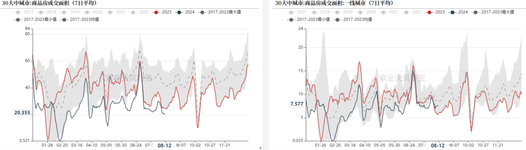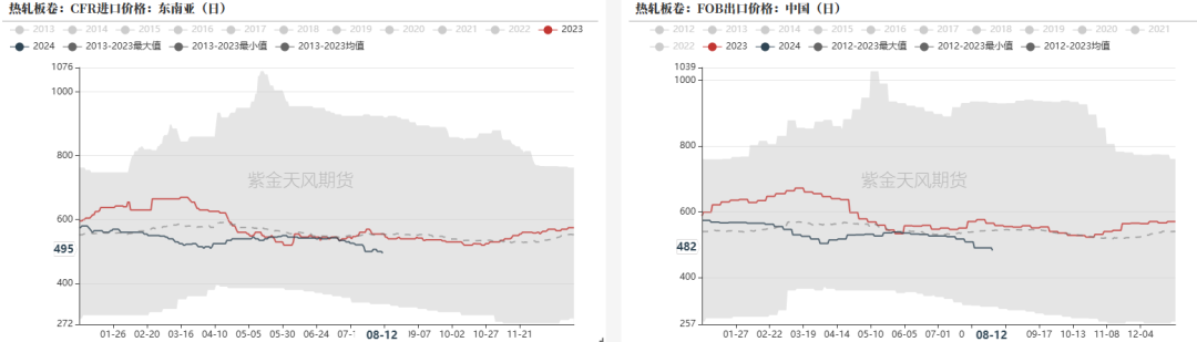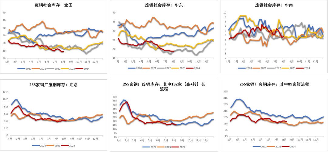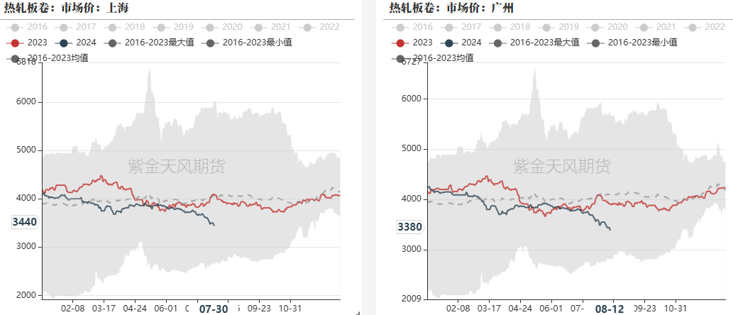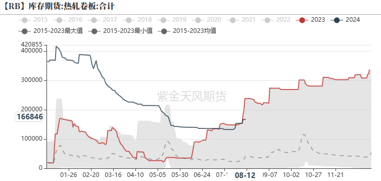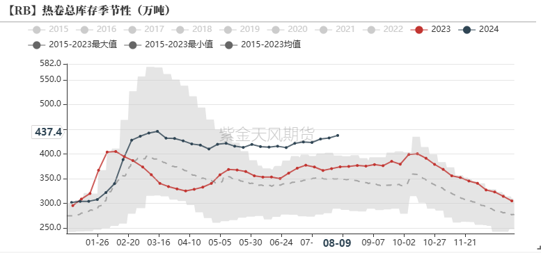 截至2024年8月9日,日均生铁产量为231.7万吨,环比下降4.92万吨(降幅2.08%);相比于去年同期下降4.9%。